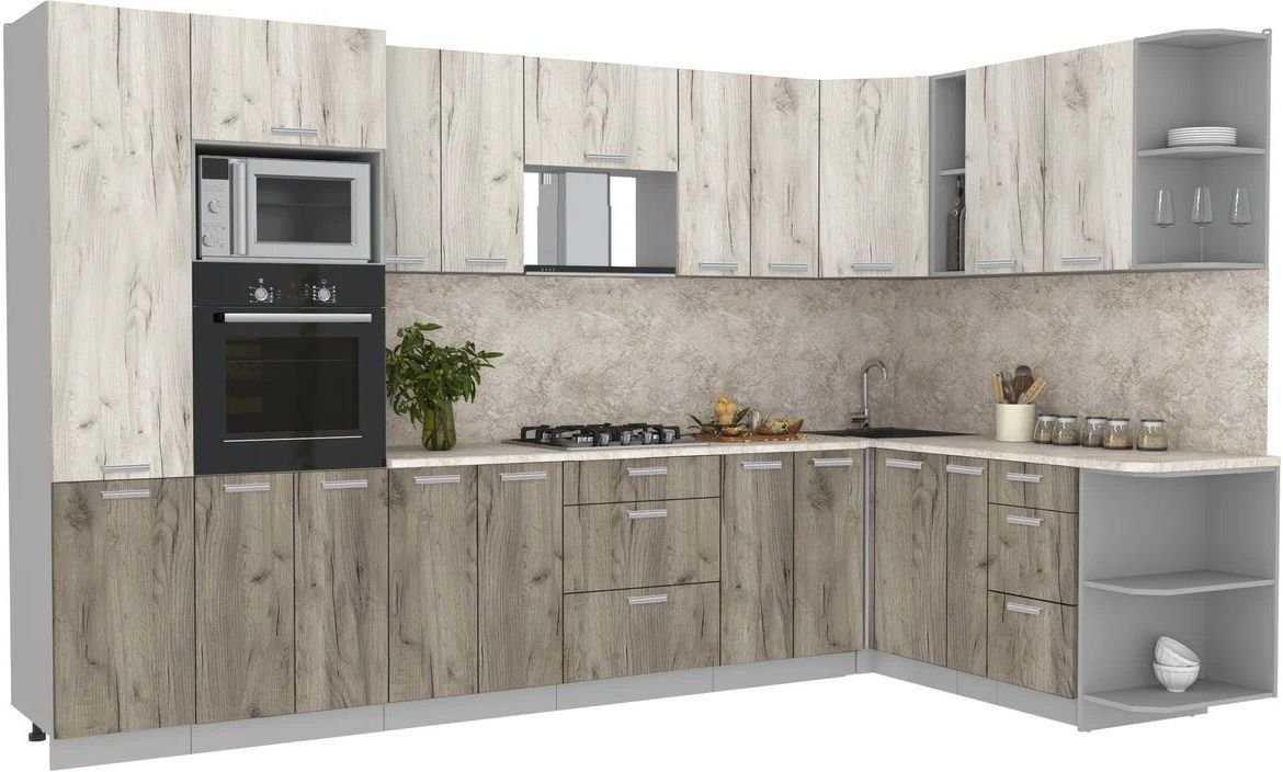 Готовая кухня Интерлиния Мила Лайт 1.88x3.4 правая (дуб белый/дуб серый/малага)