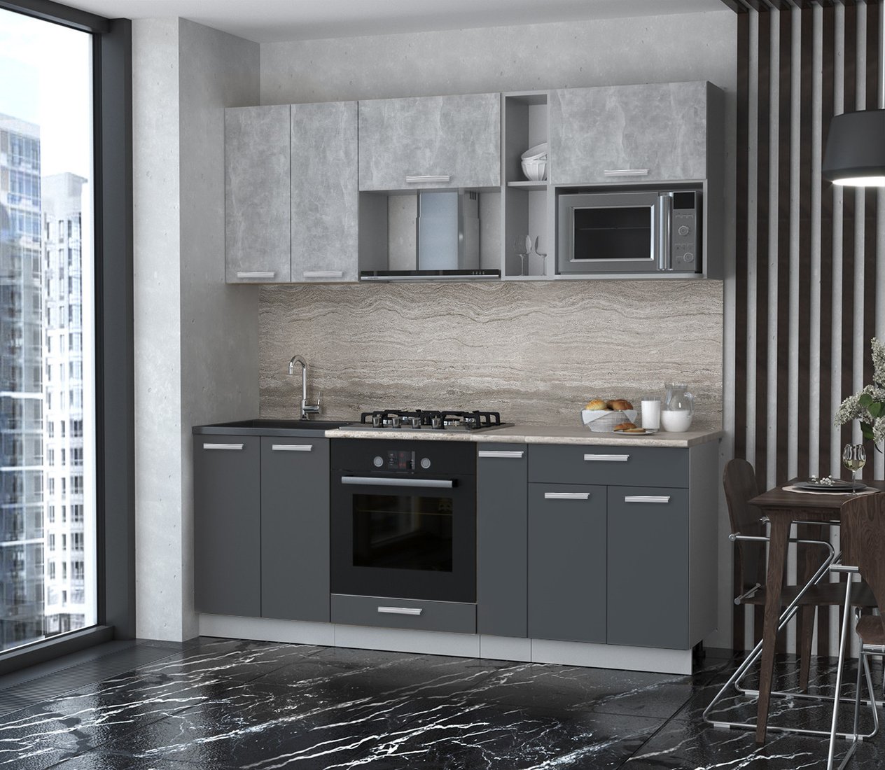 Готовая кухня Интерлиния Мила Лайт 2.0 ВТ (бетон/антрацит/травертин)