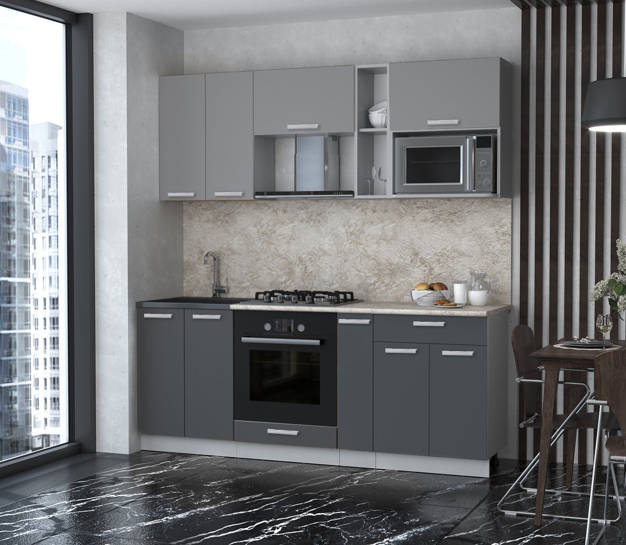 линейная, длина 200 см, ширина 60 см, каркас ЛДСП, фасад ЛДСП, установка мойки: накладная мойка, ширина шкафа под мойку 60 см