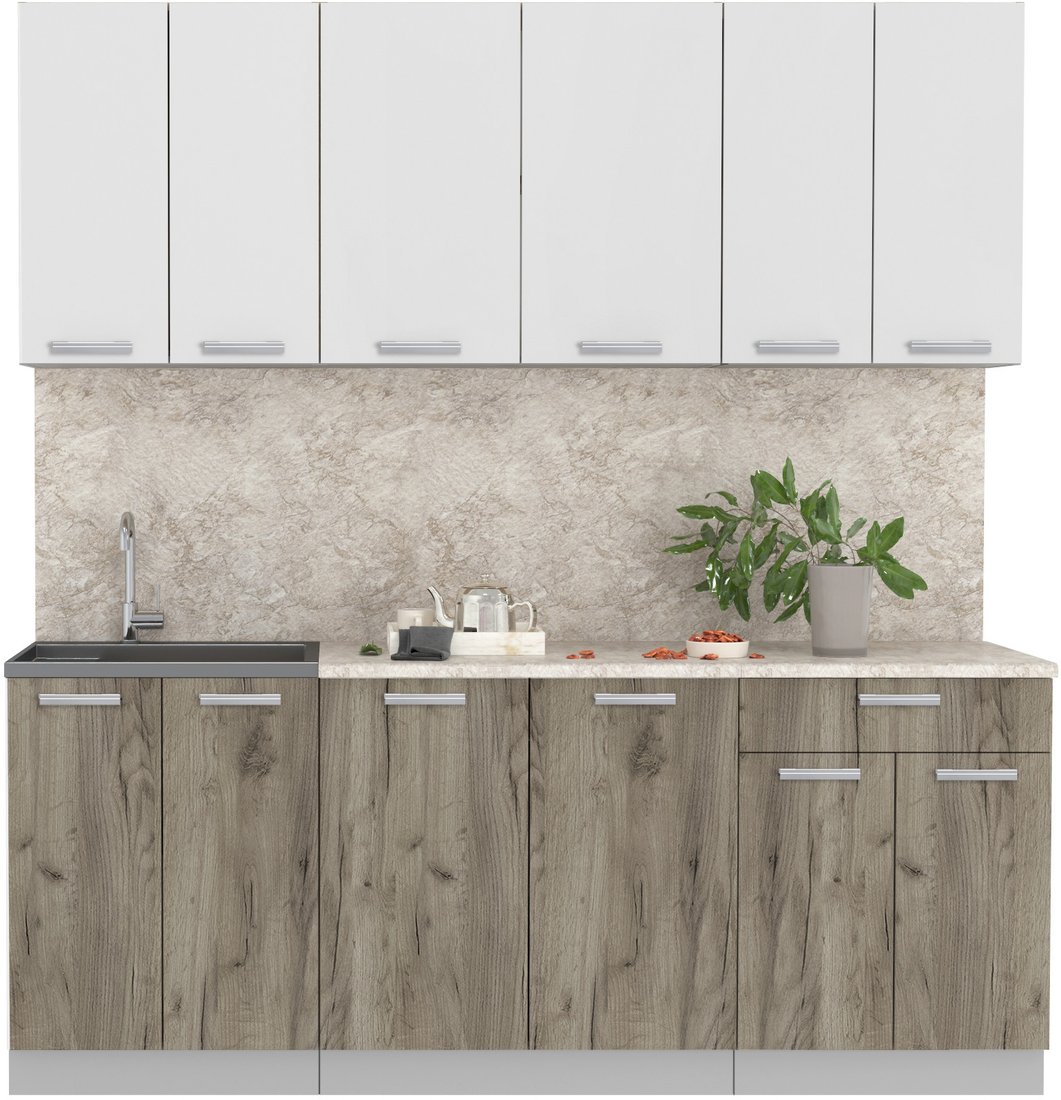 линейная, длина 200 см, ширина 60 см, каркас ЛДСП, фасад ЛДСП, установка мойки: накладная мойка, ширина шкафа под мойку 60 см