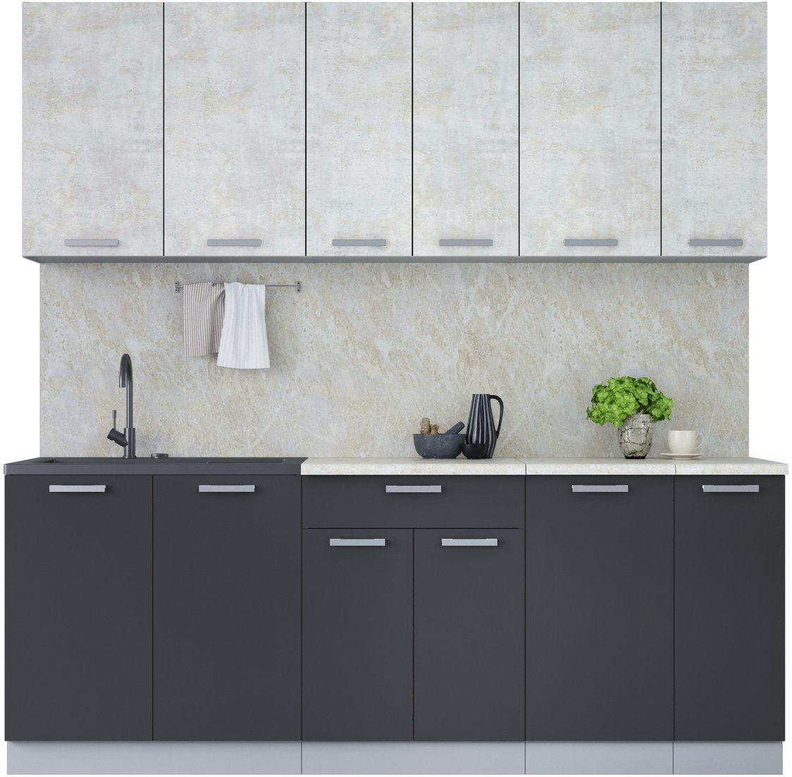 Готовая кухня Интерлиния Мила Лайт 2.1 (бетон лайт/антрацит/опал светлый)