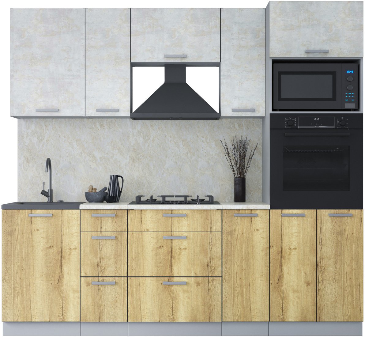 Готовая кухня Интерлиния Мила Лайт 2.3 ВТ (бетон лайт/дуб золотой/опал светлый)