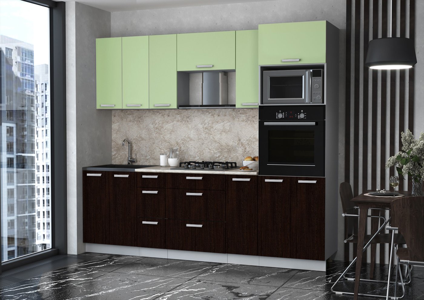 Готовая кухня Интерлиния Мила Лайт 2.4 ВТ (салатовый/дуб венге/малага)