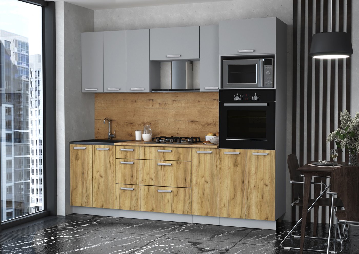 линейная, длина 240 см, ширина 60 см, каркас ЛДСП, фасад ЛДСП, установка мойки: накладная мойка, ширина шкафа под мойку 60 см