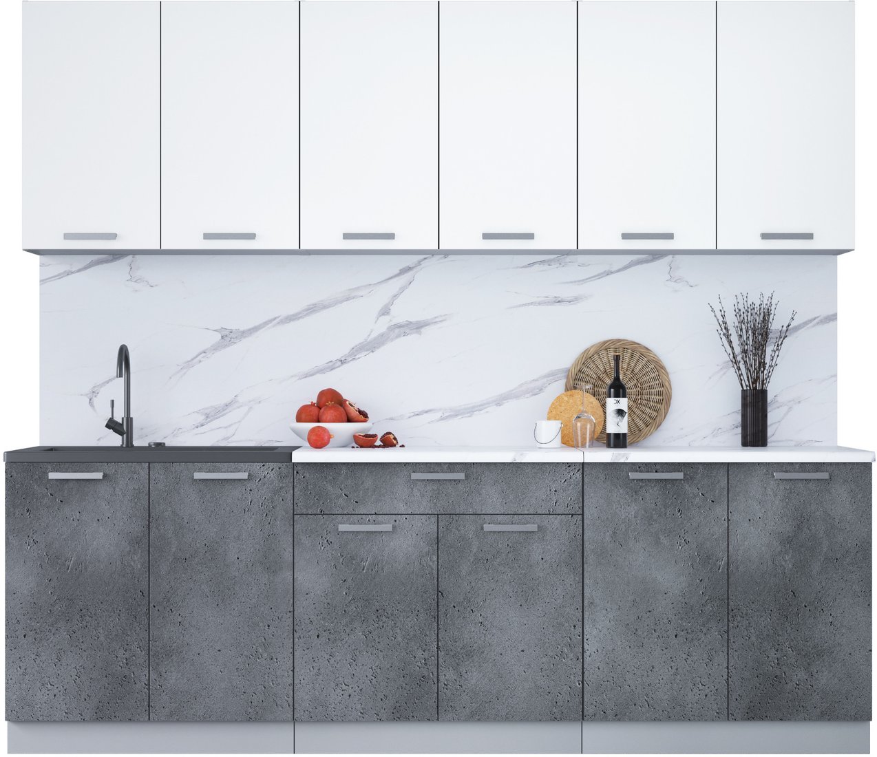 Готовая кухня Интерлиния Мила Лайт 2.4 (белый платинум/бетон портленд/белый гранит)