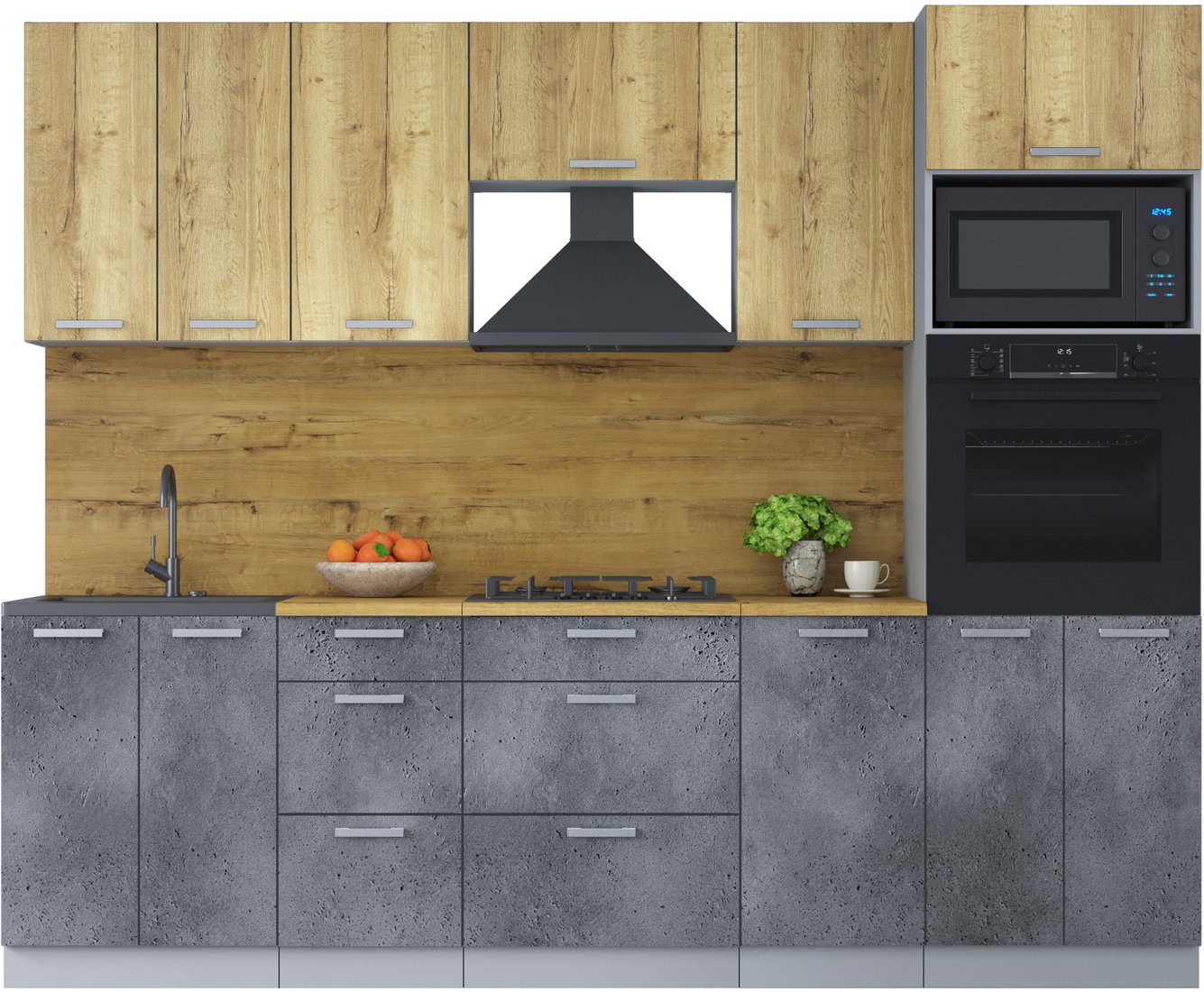 Готовая кухня Интерлиния Мила Лайт 2.6 ВТ (дуб золотой/бетон портленд)