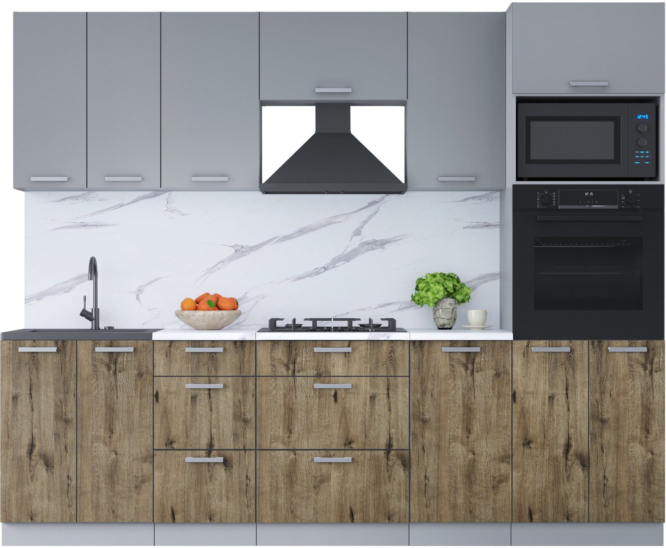 Готовая кухня Интерлиния Мила Лайт 2.6 ВТ (серебро/дуб веллингтон)