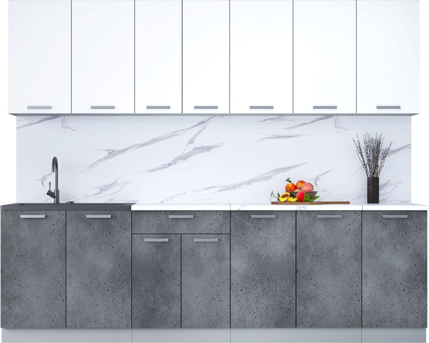 Готовая кухня Интерлиния Мила Лайт 2.6 (белый платинум/бетон портленд/белый гранит)