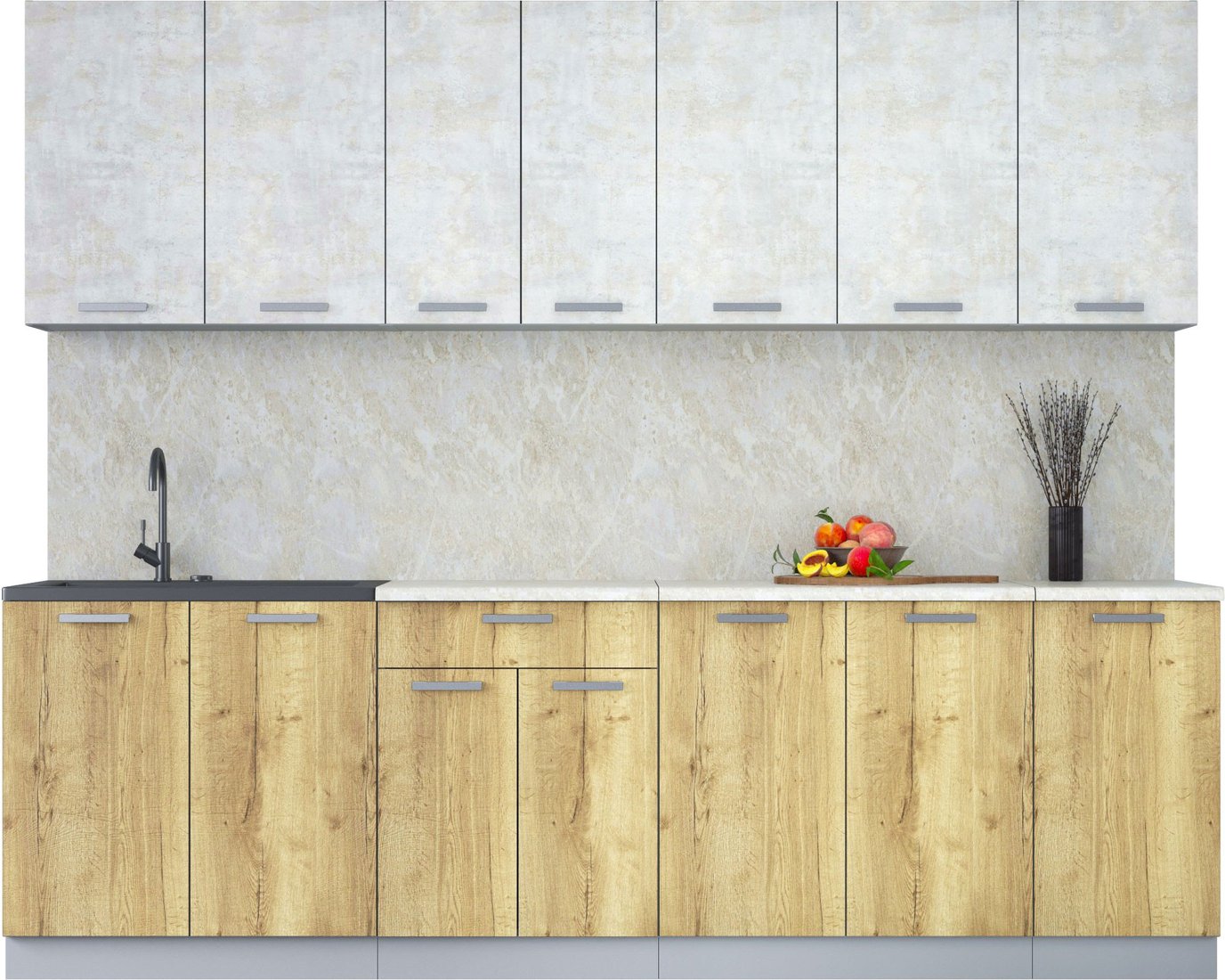 линейная, длина 260 см, ширина 60 см, каркас ЛДСП, фасад ЛДСП, установка мойки: накладная мойка, ширина шкафа под мойку 80 см