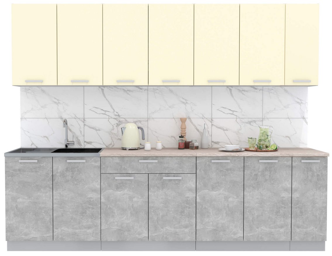 Готовая кухня Интерлиния Мила Лайт 2.7 (ваниль-бетон-травертин)