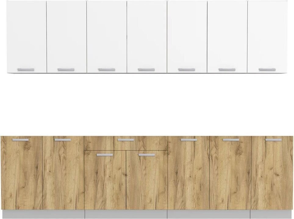 линейная, длина 280 см, ширина 60 см, каркас ЛДСП, фасад ЛДСП, установка мойки: накладная мойка, ширина шкафа под мойку 80 см