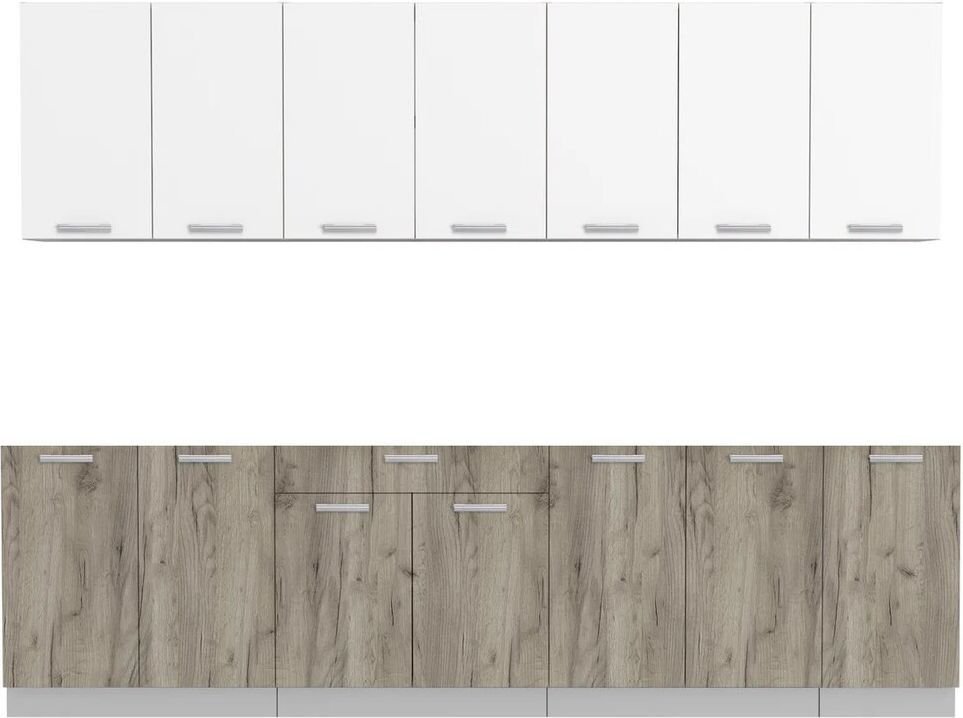 линейная, длина 280 см, ширина 60 см, каркас ЛДСП, фасад ЛДСП, установка мойки: накладная мойка, ширина шкафа под мойку 80 см