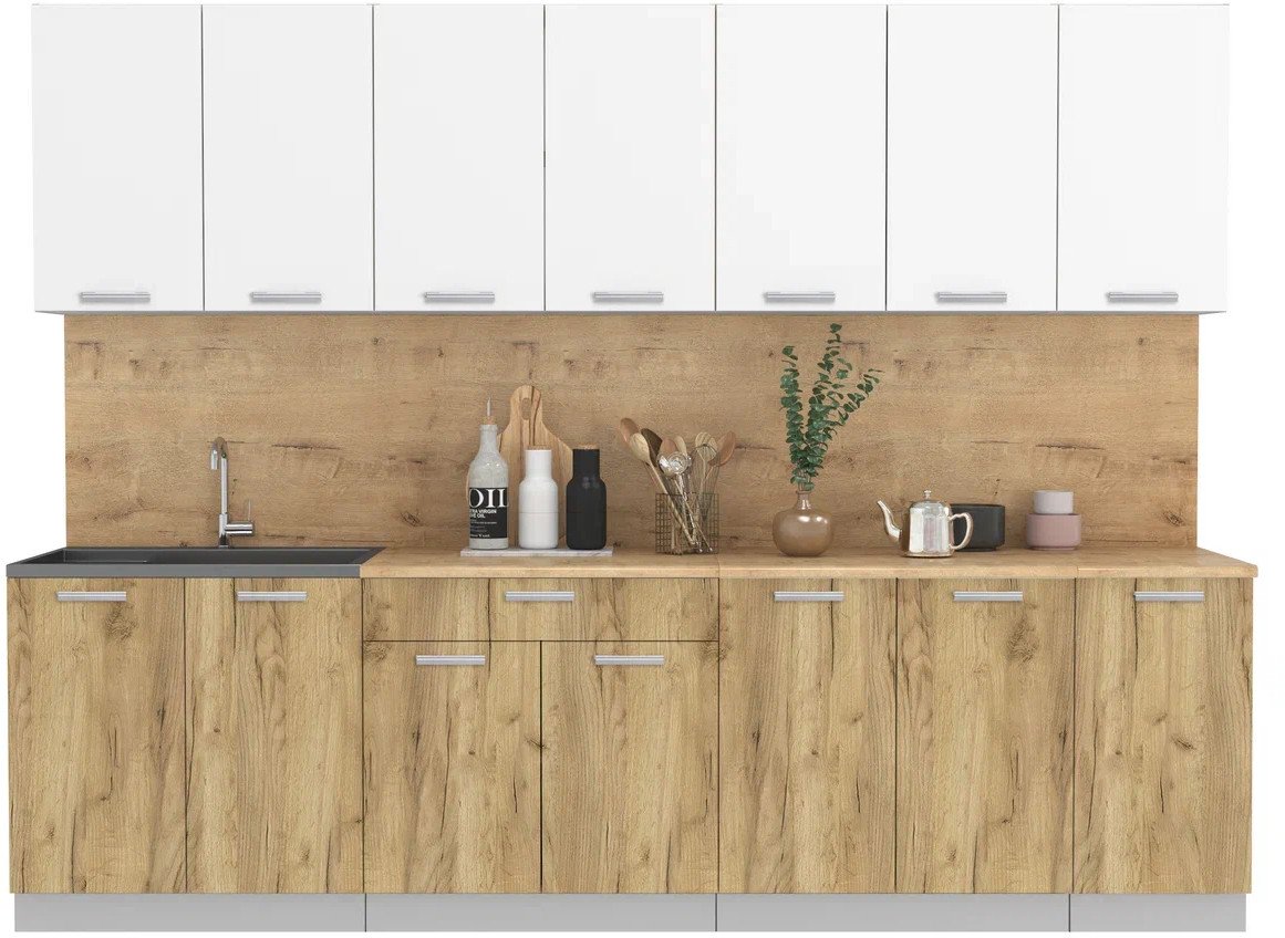 линейная, длина 280 см, ширина 60 см, каркас ЛДСП, фасад ЛДСП, установка мойки: накладная мойка, ширина шкафа под мойку 80 см