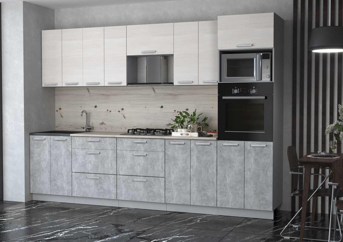 Готовая кухня Интерлиния Мила Лайт 3.0 ВТ (вудлайн кремовый/бетон/бискайская сосна)