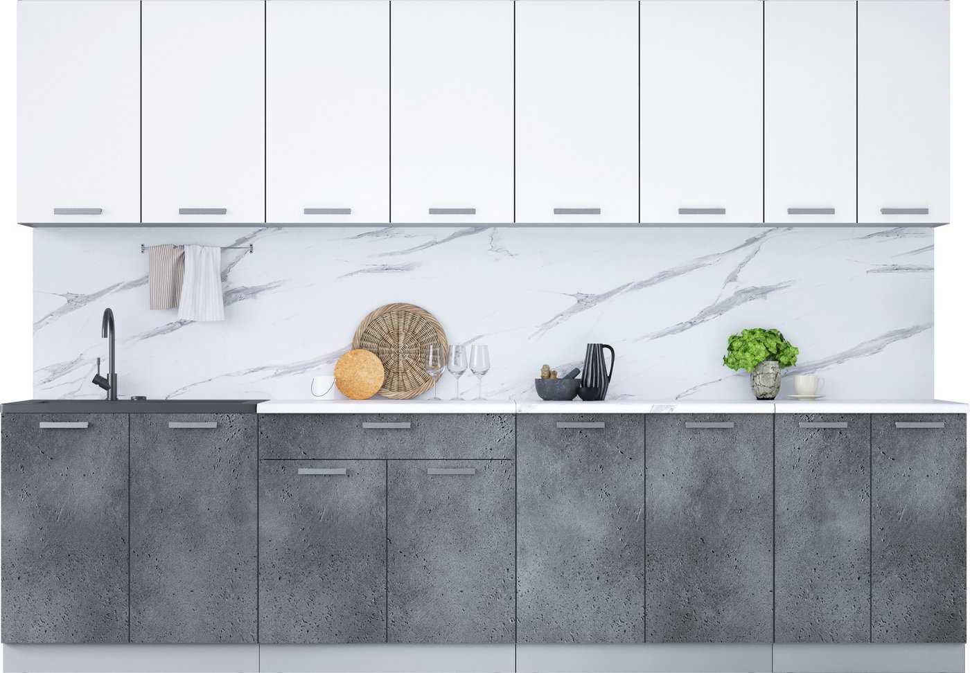 Готовая кухня Интерлиния Мила Лайт 3.0 (белый платинум/бетон портленд/белый гранит)