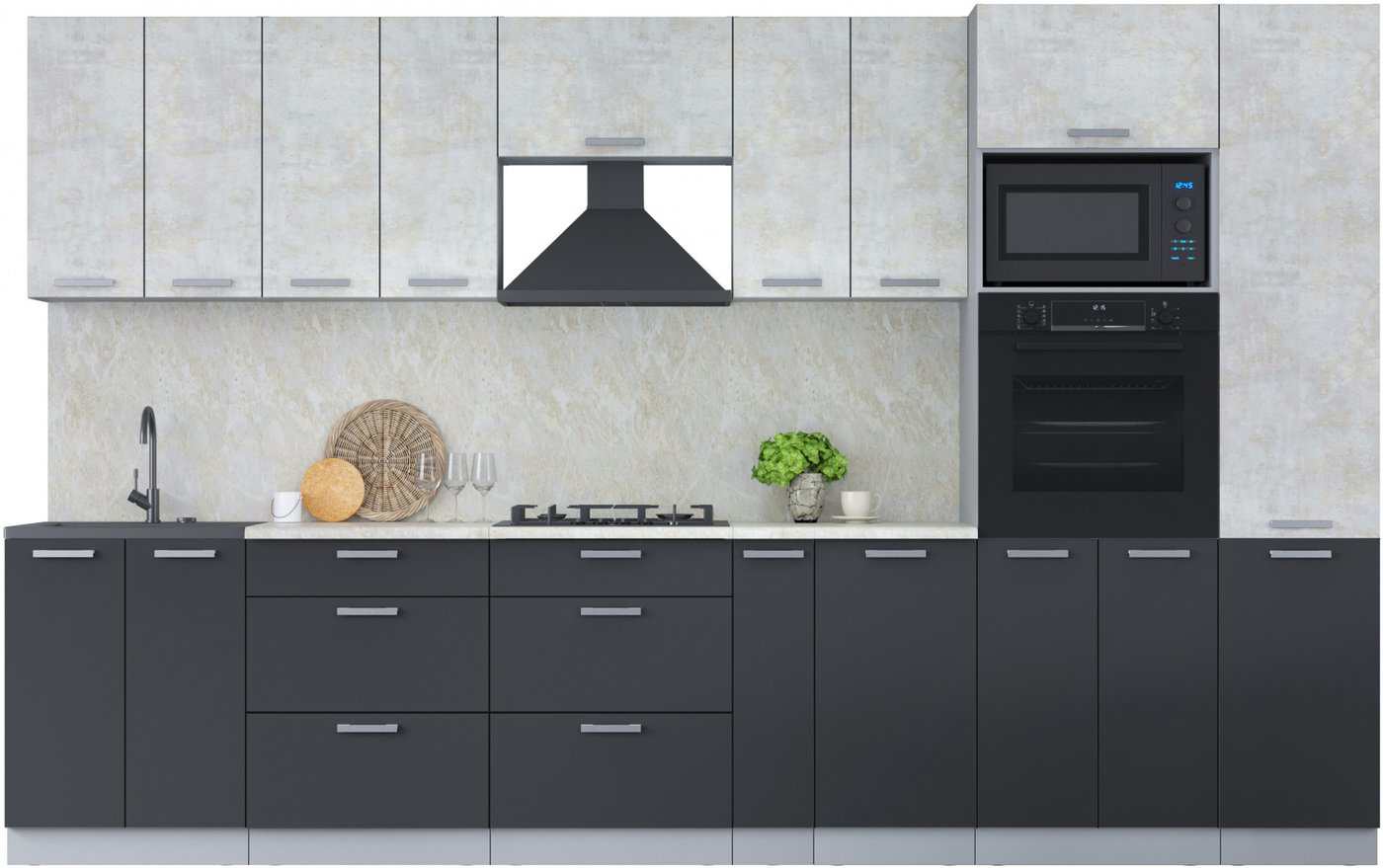 Готовая кухня Интерлиния Мила Лайт 3.4 ВТ (бетон лайт/антрацит/опал светлый)