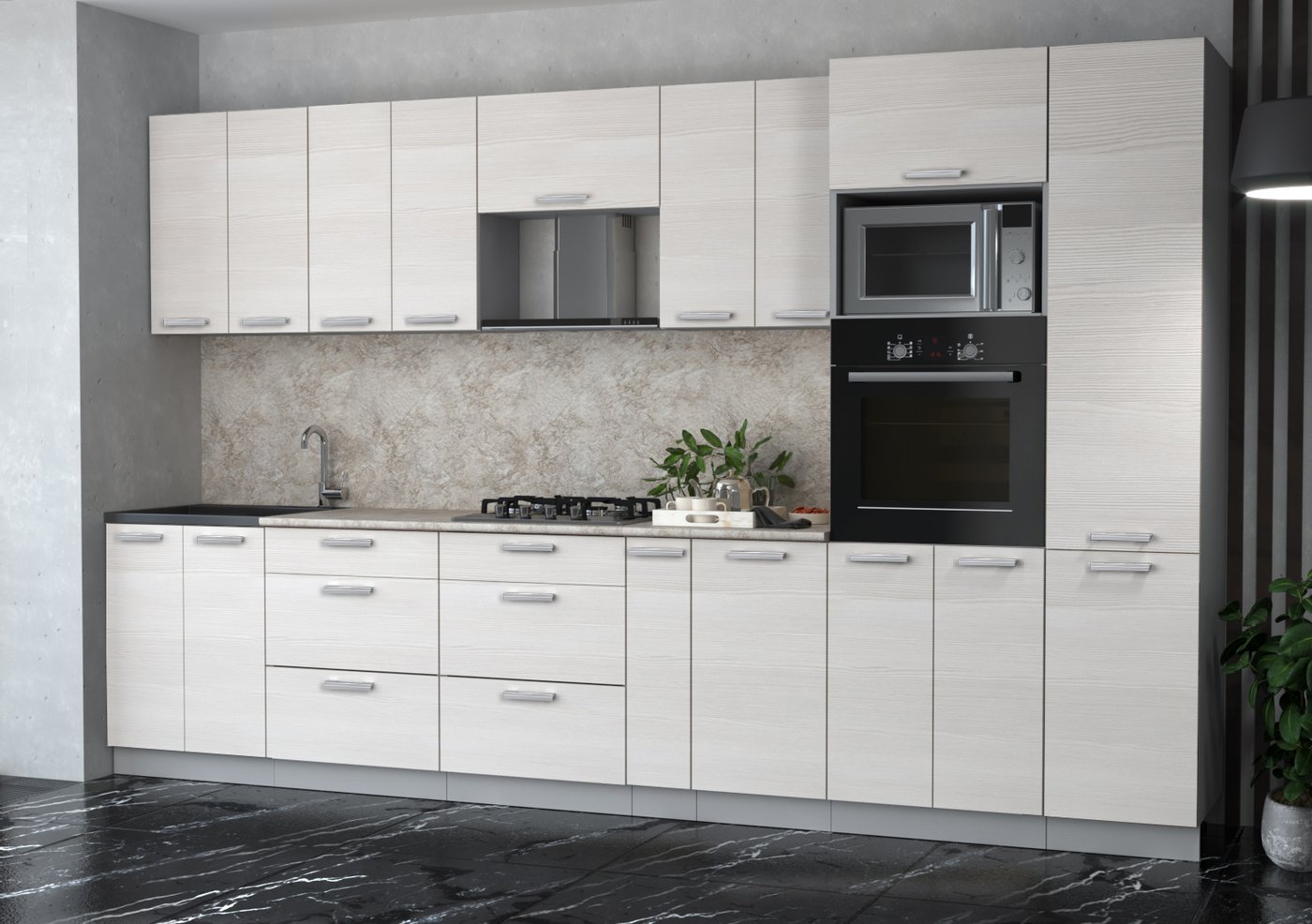 линейная, длина 360 см, каркас ЛДСП, фасад ЛДСП, установка мойки: накладная мойка, ширина шкафа под мойку 80 см