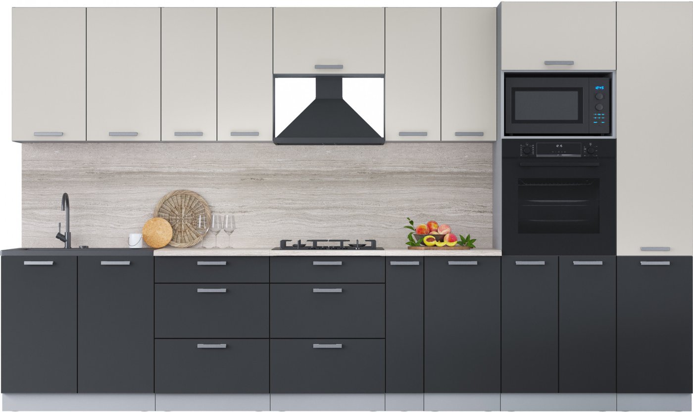 Готовая кухня Интерлиния Мила Лайт 3.6 ВТ (персидский жемчуг/антрацит/травертин серый)