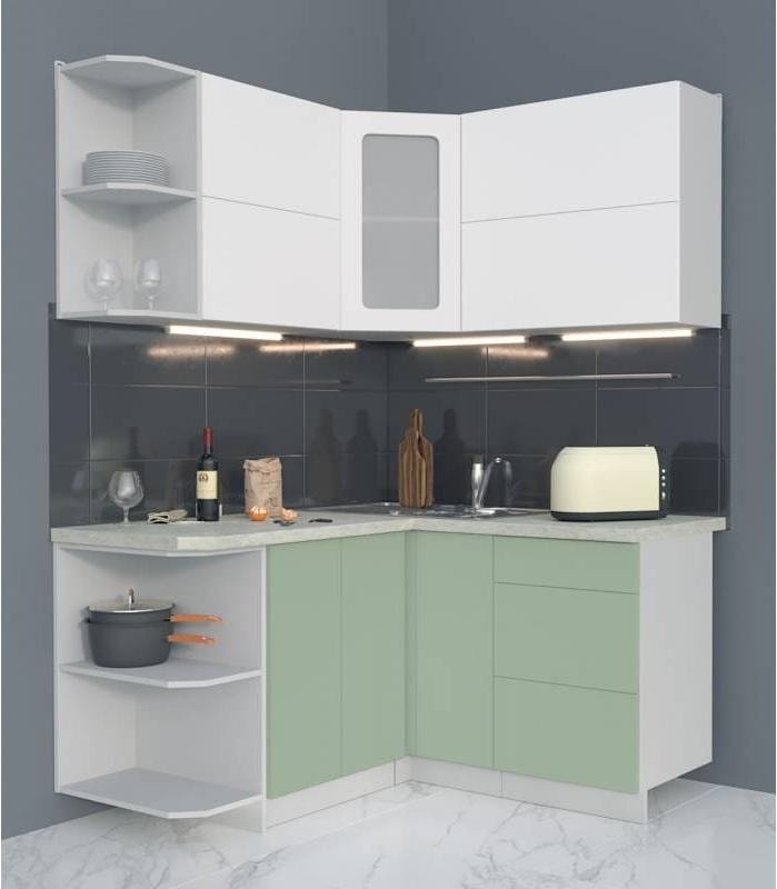 Готовая кухня Интерлиния Мила Матте 1.5x1.4 А левая (белый/мята/опал светлый)