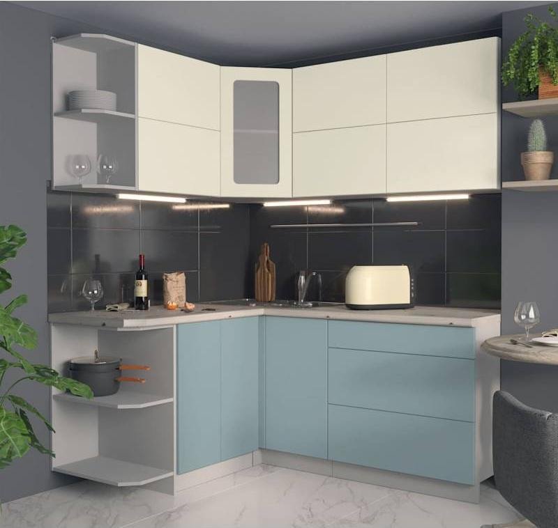 Готовая кухня Интерлиния Мила Матте 1.5x1.8 А левая (слоновая кость/океан/опал светлый)