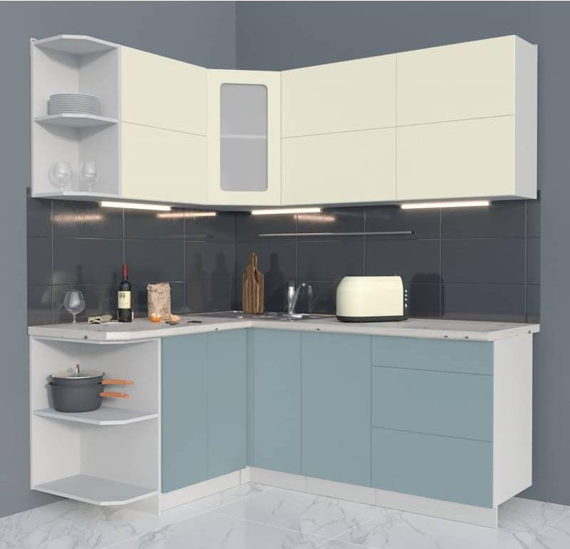 Готовая кухня Интерлиния Мила Матте 1.5x1.9 А левая (слоновая кость/океан/опал светлый)