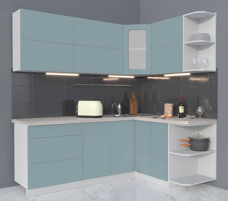 Готовая кухня Интерлиния Мила Матте 1.5x2.2 А правая (океан-океан-травертин серый)