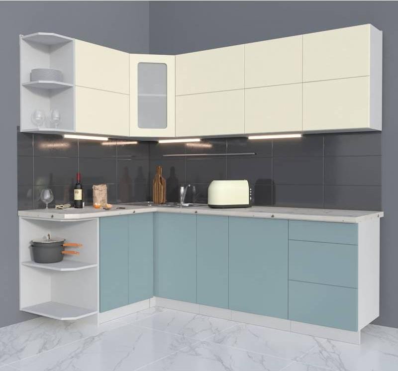 Готовая кухня Интерлиния Мила Матте 1.5x2.3 А левая (слоновая кость/океан/опал светлый)