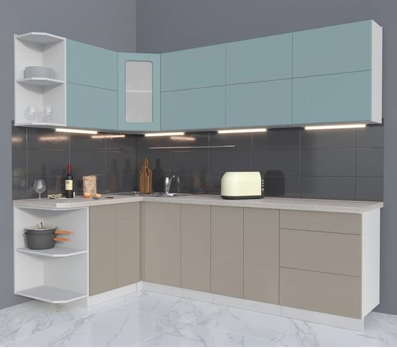 Готовая кухня Интерлиния Мила Матте 1.5x2.5 А правая (океан-луна-травертин серый)