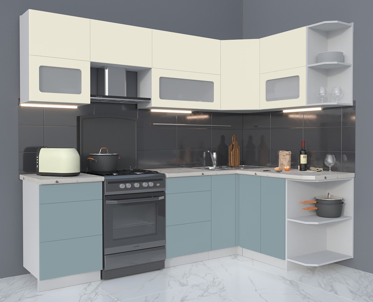 Готовая кухня Интерлиния Мила Матте 1.5x2.5 Б правая (слоновая кость/океан/опал светлый)