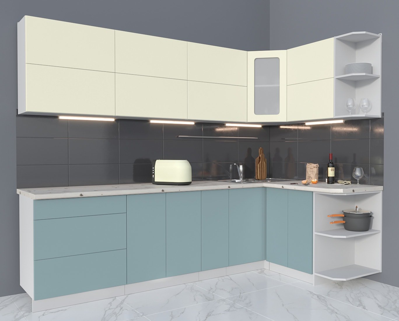 Готовая кухня Интерлиния Мила Матте 1.5x2.6 А левая (слоновая кость/океан/опал светлый)