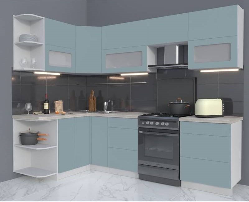 Готовая кухня Интерлиния Мила Матте 1.5x2.6 Б правая (океан-океан-травертин серый)