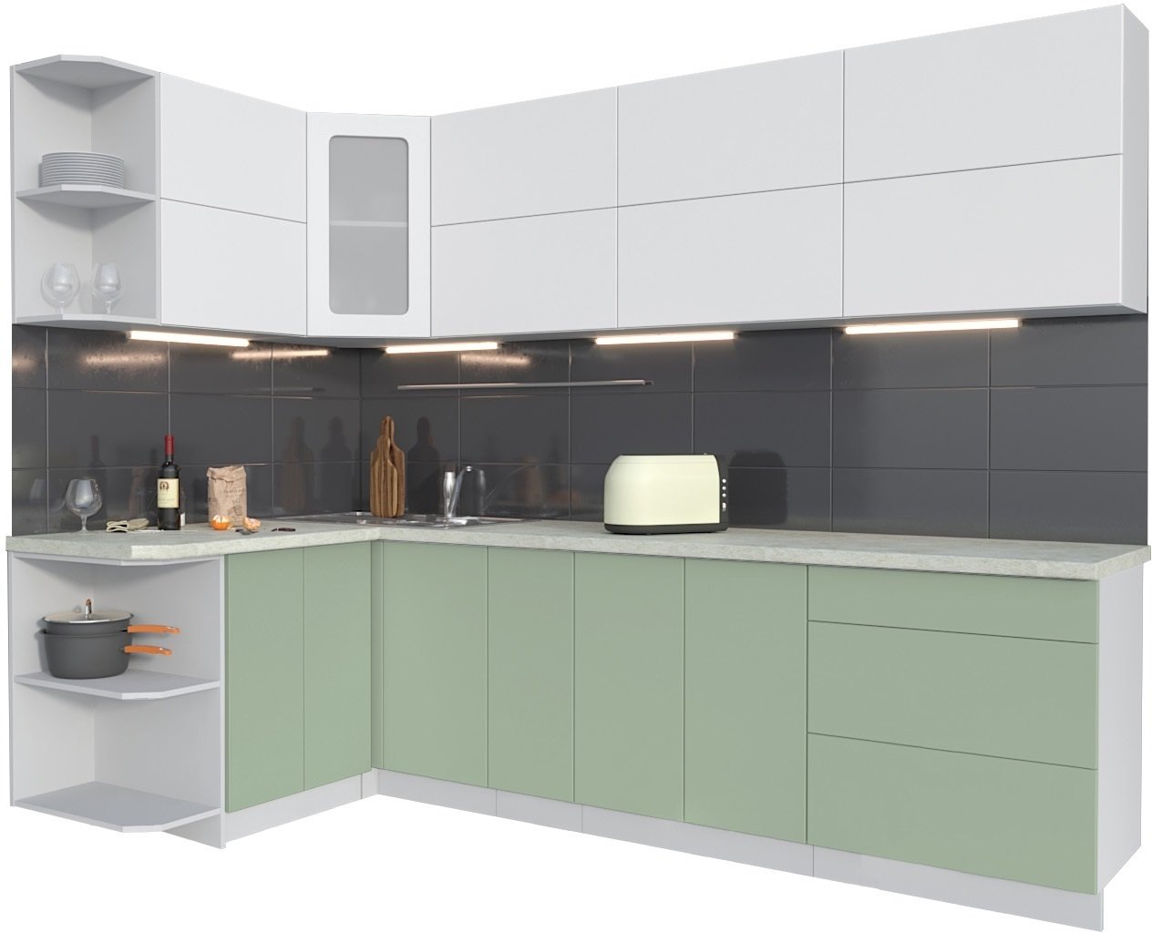 Готовая кухня Интерлиния Мила Матте 1.5x2.7 А левая (белый-мята-опал светлый)