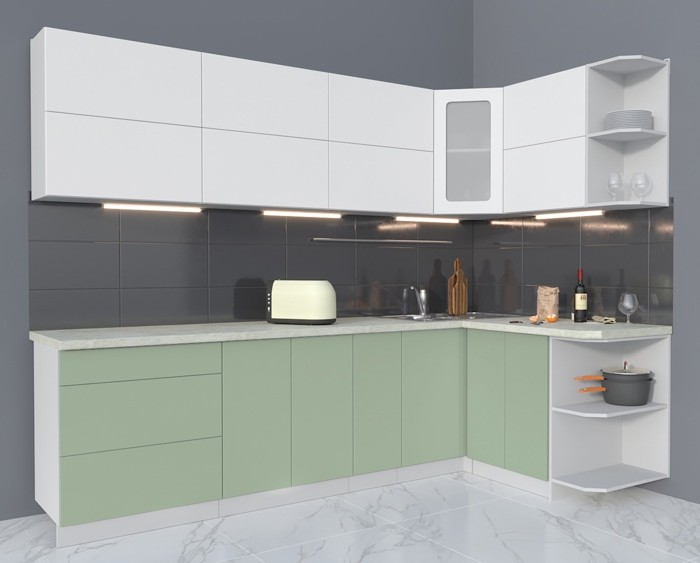 Готовая кухня Интерлиния Мила Матте 1.5x2.7 А правая (белый/мята/опал светлый)