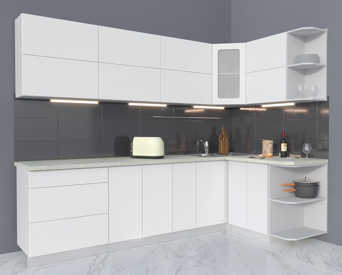 Готовая кухня Интерлиния Мила Матте 1.5x2.7 А правая (белый/белый/опал светлый)