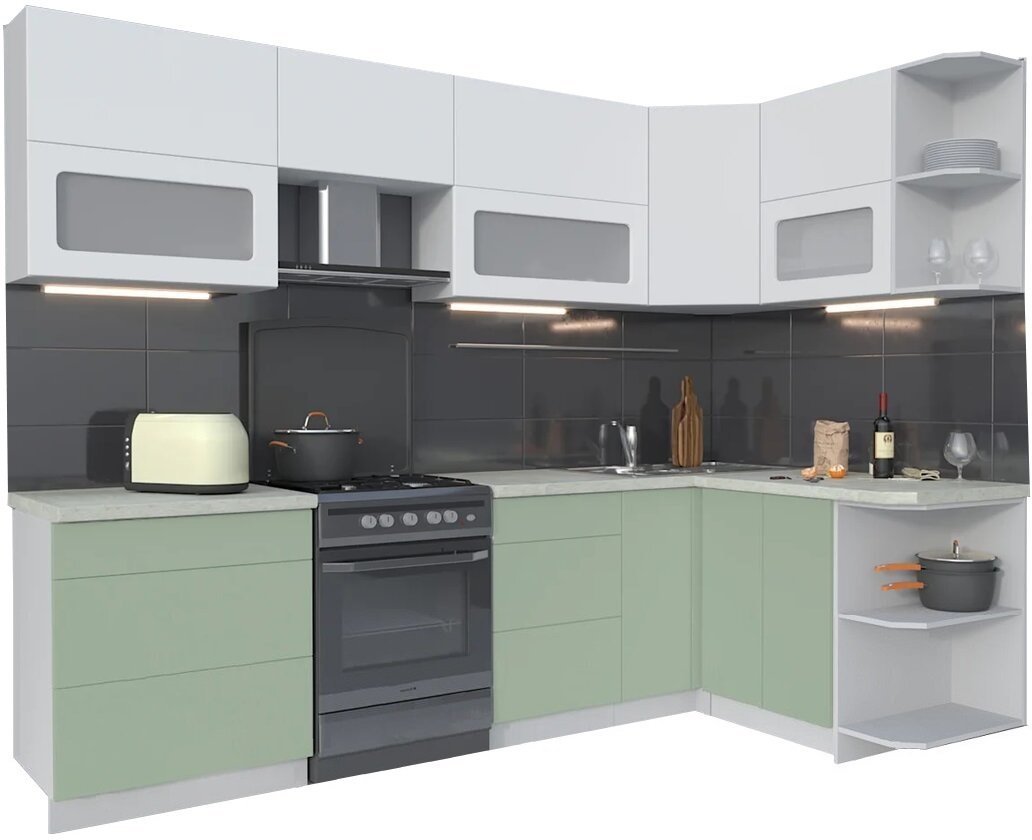 Готовая кухня Интерлиния Мила Матте 1.5x2.7 Б правая (белый-мята-опал светлый)