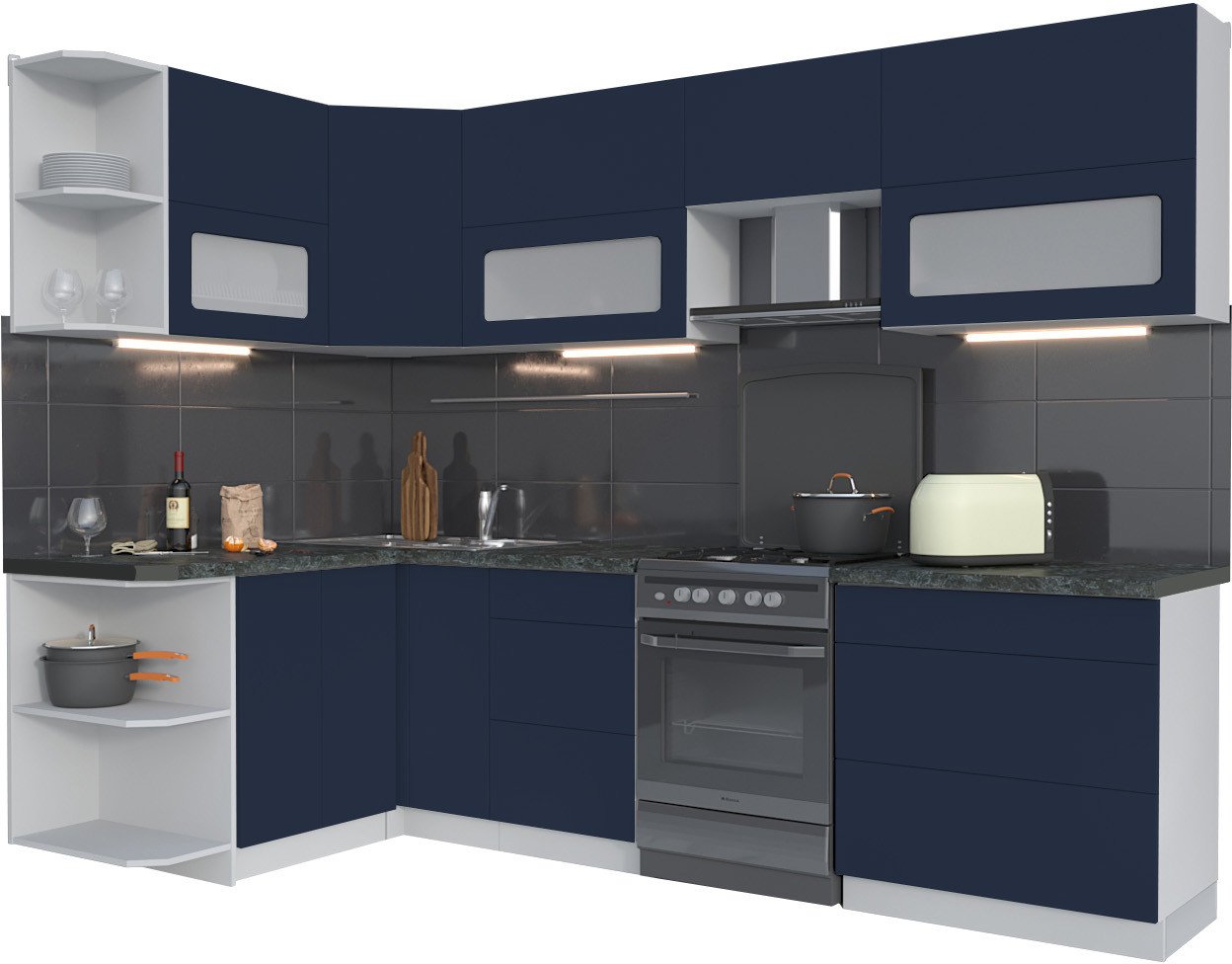 Готовая кухня Интерлиния Мила Матте 1.5x2.8 Б левая (индиго/индиго глянец/кастилло темный)