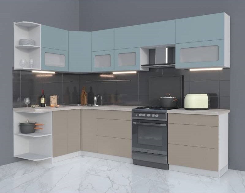 Готовая кухня Интерлиния Мила Матте 1.5x2.9 Б правая (океан-луна-травертин серый)