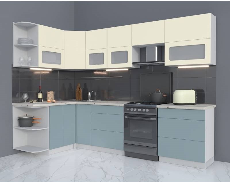 Готовая кухня Интерлиния Мила Матте 1.5x2.9 Б правая (слоновая кость-океан-опал светлый)