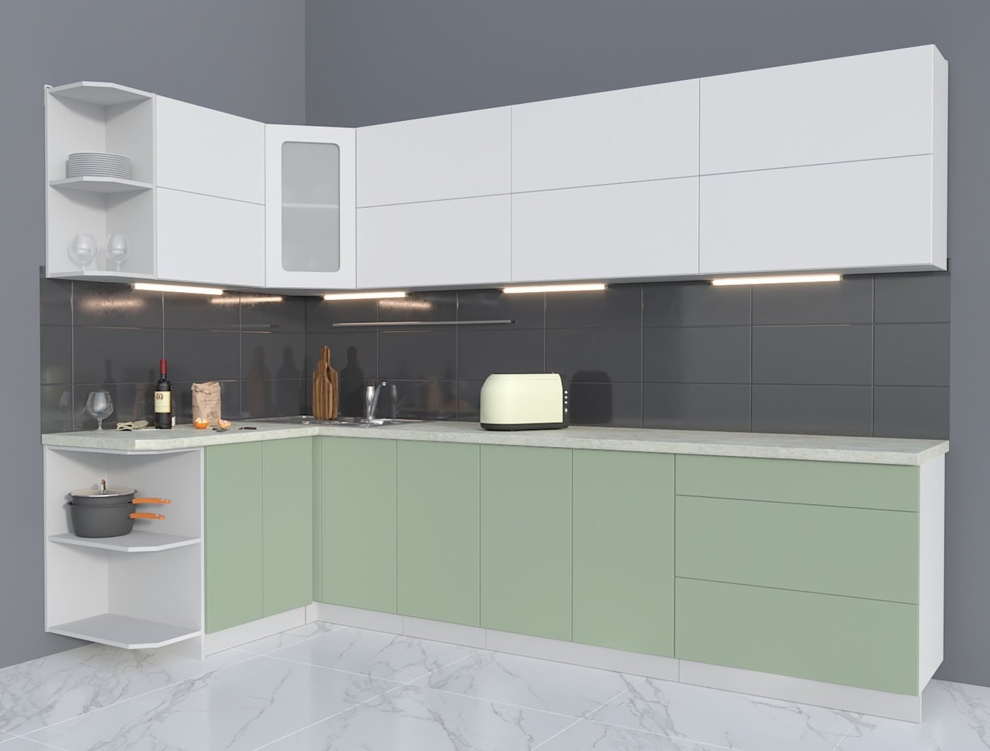 Готовая кухня Интерлиния Мила Матте 1.5x3.0 А левая (белый/мята/опал светлый)
