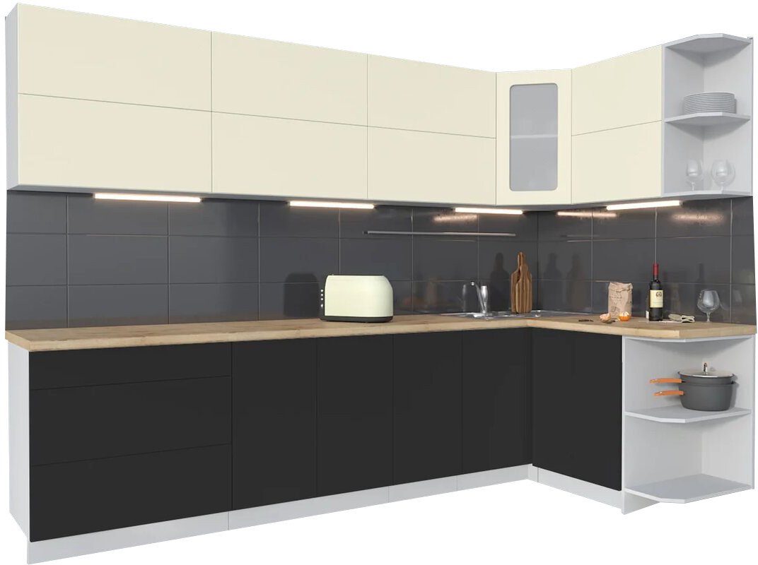 Готовая кухня Интерлиния Мила Матте 1.5x3.0 А правая (слоновая кость/пепел/травертин серый)