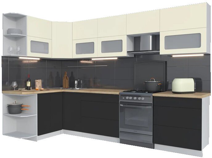 угловая, длина 310 см, ширина 150 см, каркас ЛДСП, фасад МДФ пленочный, установка мойки: врезная мойка, ширина шкафа под мойку 88 см