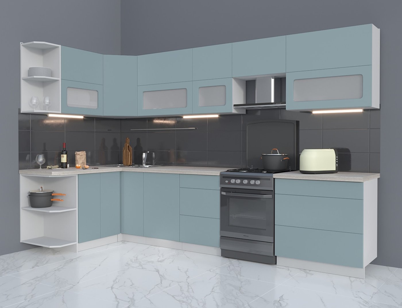 Готовая кухня Интерлиния Мила Матте 1.5x3.3 Б левая (океан/океан/травертин серый)