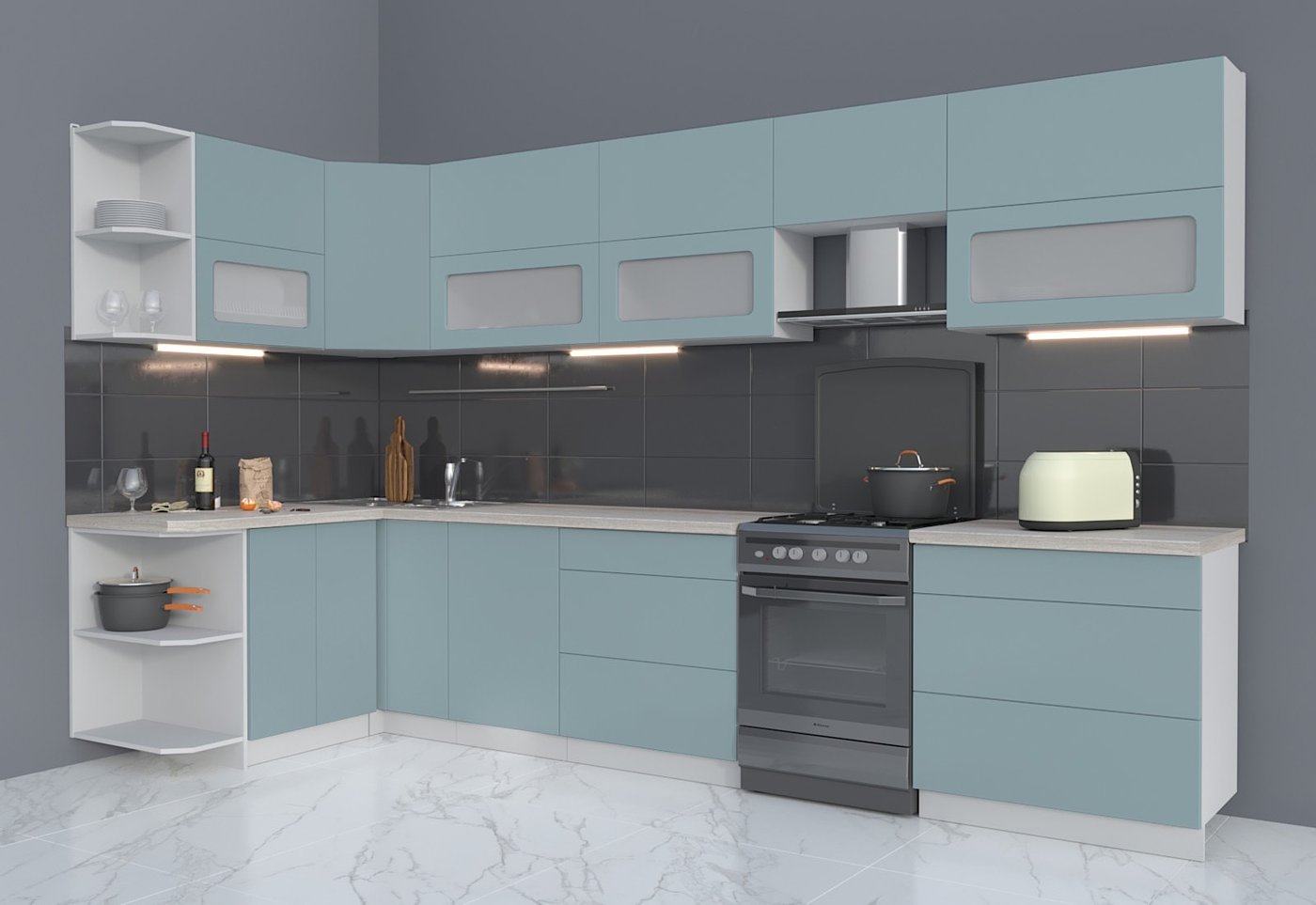 Готовая кухня Интерлиния Мила Матте 1.5x3.5 Б левая (океан/океан/травертин серый)