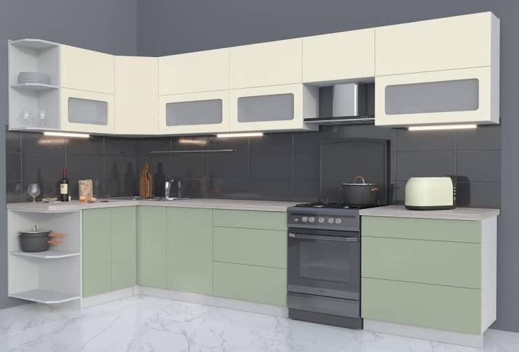 Готовая кухня Интерлиния Мила Матте 1.5x3.5 Б правая (слон кость-мята-травертин серый)