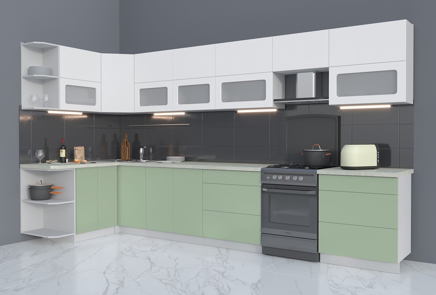Готовая кухня Интерлиния Мила Матте 1.5x3.8 Б левая (белый/мята/опал светлый)