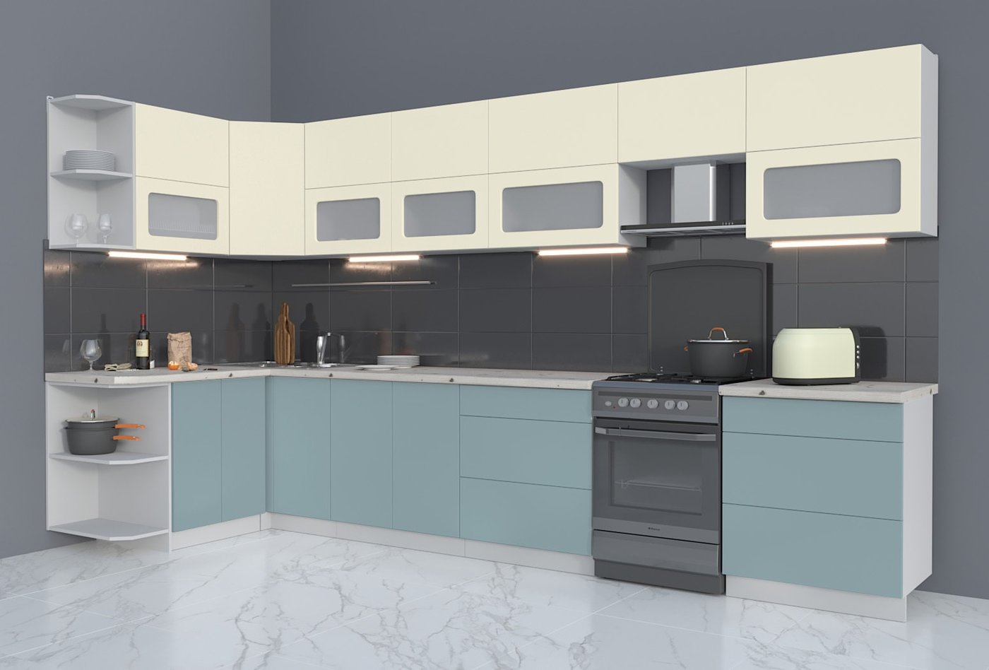 Готовая кухня Интерлиния Мила Матте 1.5x3.8 Б левая (слоновая кость/океан/опал светлый)
