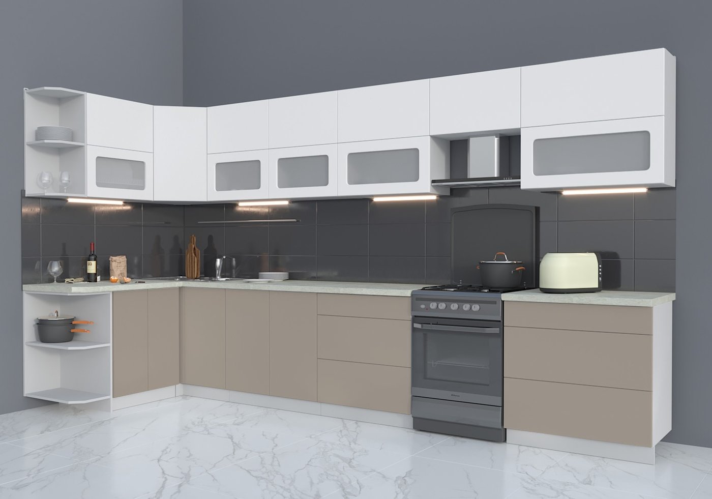 Готовая кухня Интерлиния Мила Матте 1.5x3.9 Б левая (белый/луна/опал светлый)