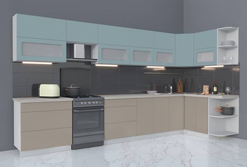 Готовая кухня Интерлиния Мила Матте 1.5x3.9 Б правая (океан-луна-травертин серый)