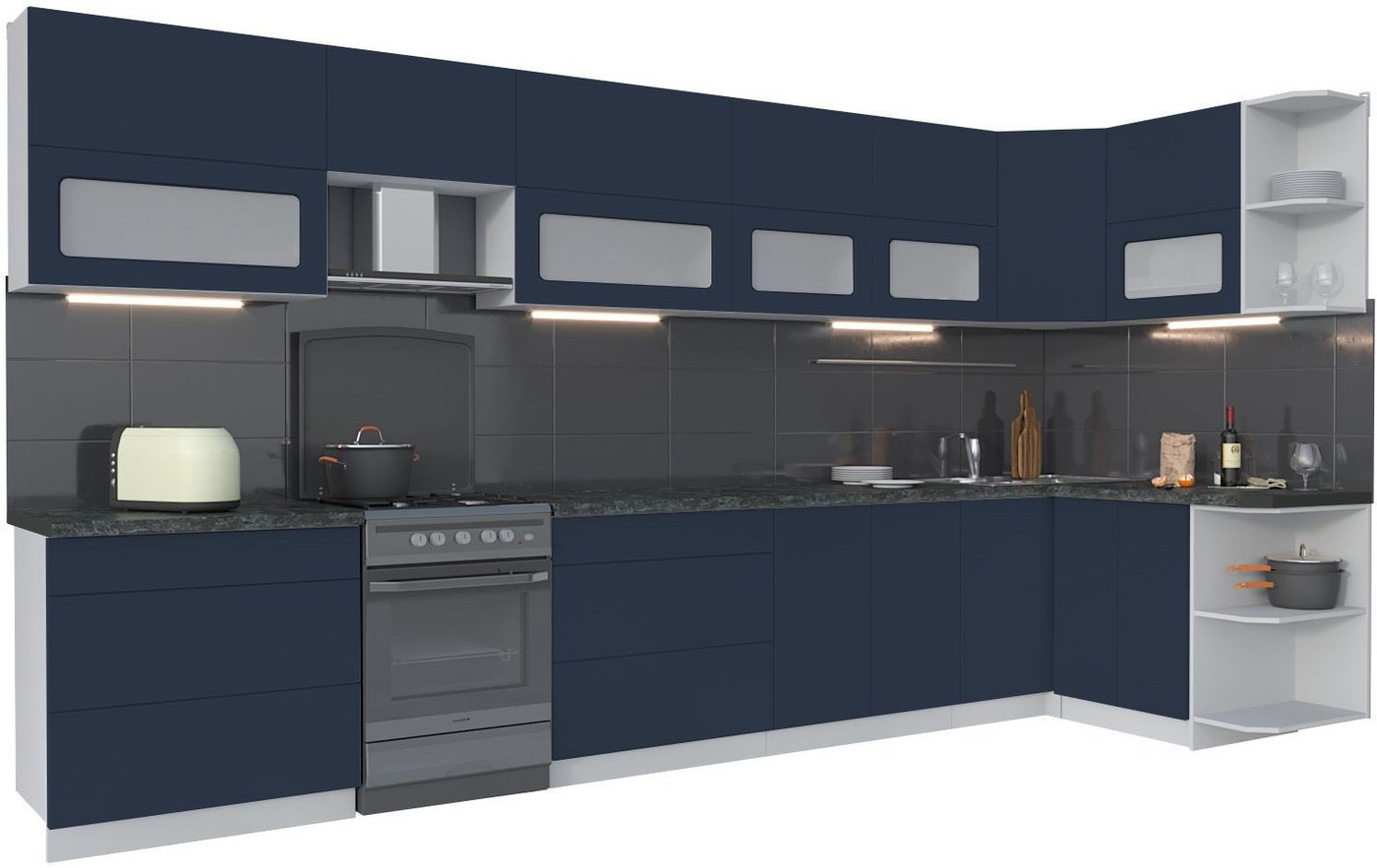 Готовая кухня Интерлиния Мила Матте 1.5x4.0 Б правая (индиго/индиго глянец/кастилло темный)
