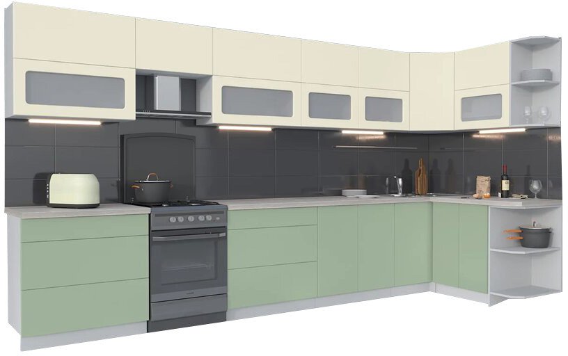 Готовая кухня Интерлиния Мила Матте 1.5x4.0 Б правая (слоновая кость/мята/травертин серый)